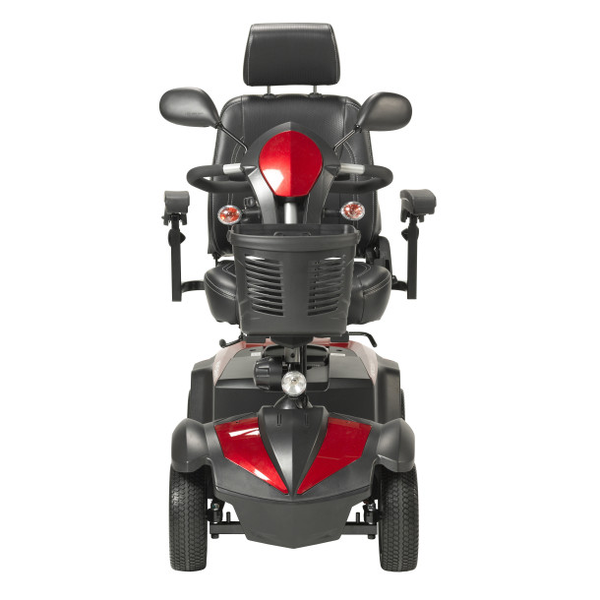 The Drive Medical Ventura 4 scooter offers a great combination of performance, size, comfort and styling, making it the perfect mobility option if you're looking for the "next step up" from a compact/transportable scooter which includes a 400 lb. weight capacity. The Ventura 4 performs well both indoors and outdoors. This Deluxe model features 36AH batteries for greater range, a full safety package which includes rear view mirrors, additional lighting, and a 20" wide Captain's Seat. You can even customize the Ventura's color with the red and blue interchangeable panels. All Ventura models have four different seat height adjustments and automobile-style seat positioning which slides for forward or backward providing even more comfort. The padded armrests are height, width and angle adjustable. Controlling the Ventura cannot be easier thanks to the adjustable angle tiller that allows you to place the controls in the most comfortable position and the ergonomic delta handles which make it easier for those with limited strength or dexterity to operate the scooter. Go ahead, experience the Drive difference.